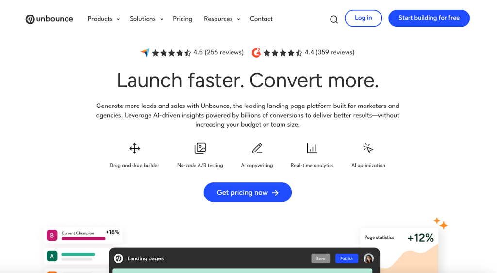 Unbounce is an AI-driven landing page and lead capture tool that helps businesses improve conversion rates.