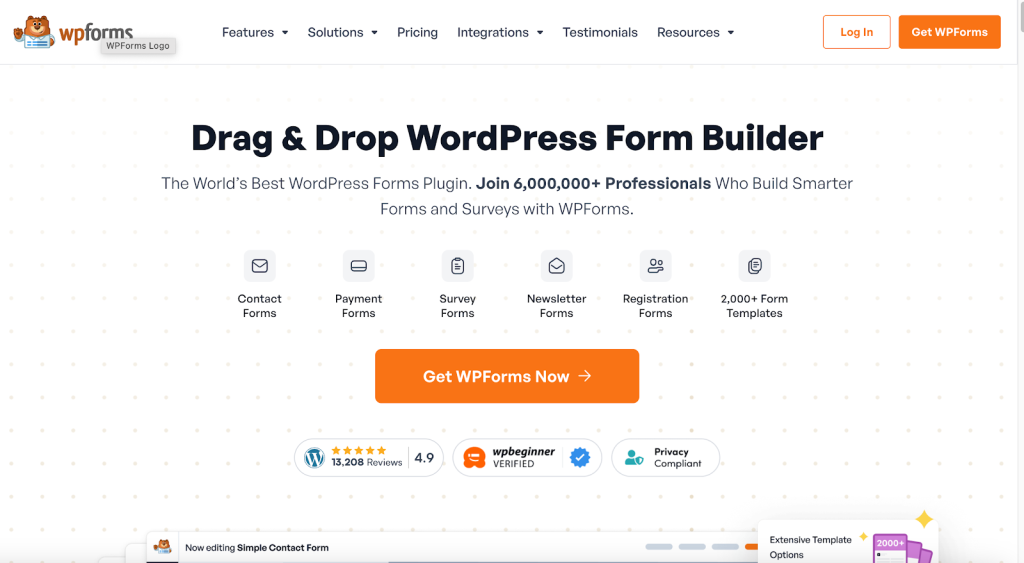 WPForms is a WordPress-native form builder that allows businesses to create custom lead capture forms directly within their websites.