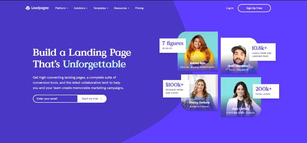 Leadpages is designed for businesses that generate leads through high-converting landing pages. It offers pre-built templates, pop-ups, and lead capture forms that integrate with CRMs and email marketing tools.