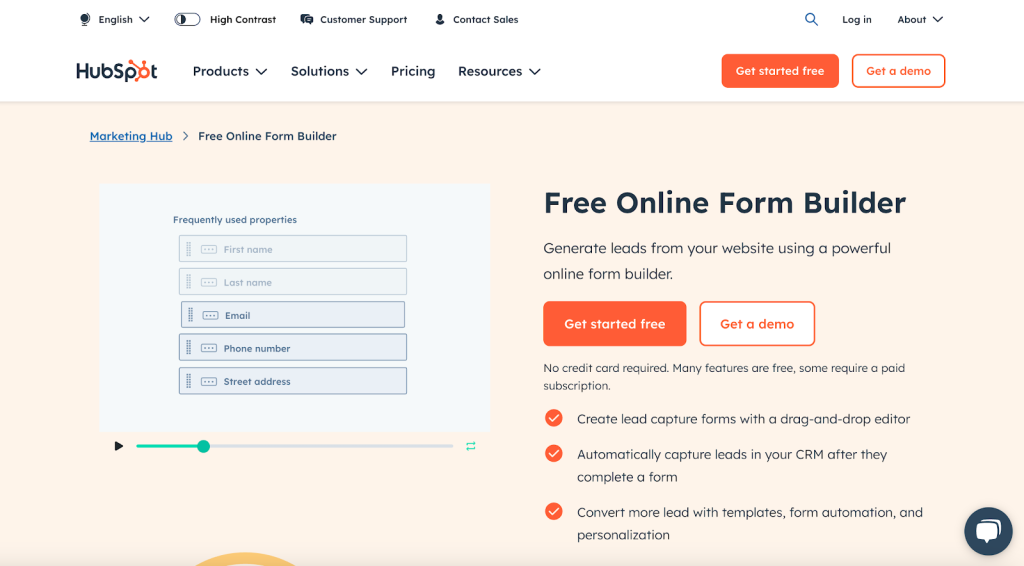 It features a simple drag-and-drop builder, and every lead collected is automatically stored in HubSpot’s free CRM. This makes it easier for sales teams to follow up with new prospects without manual data entry.