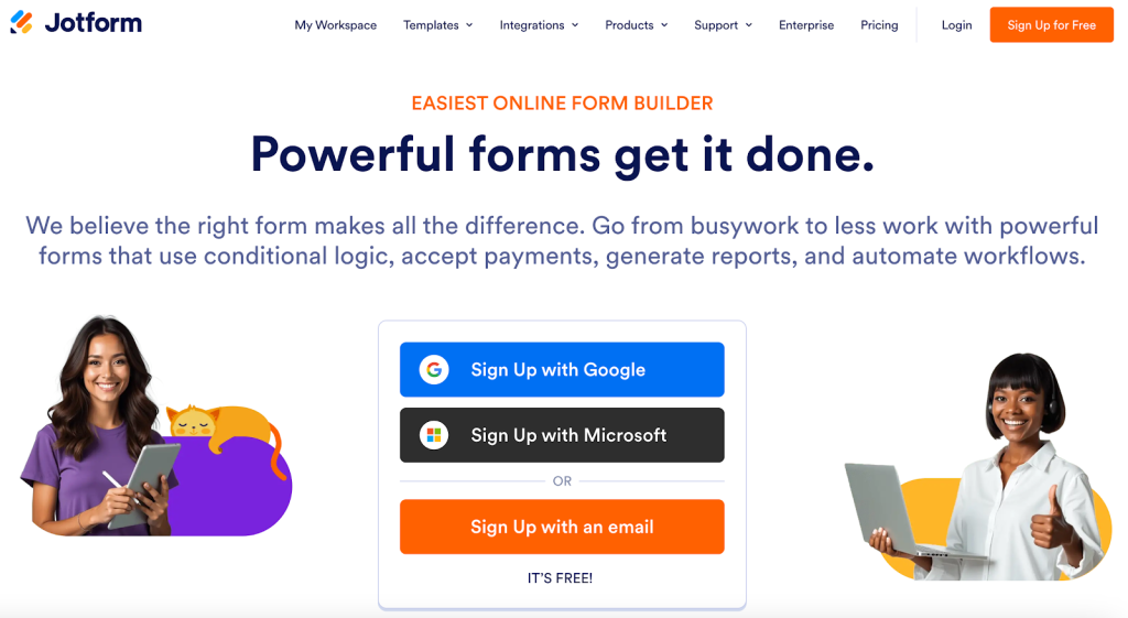 Jotform is a flexible form builder designed for businesses of all sizes. It features a drag-and-drop interface, making it easy to create custom forms without coding.