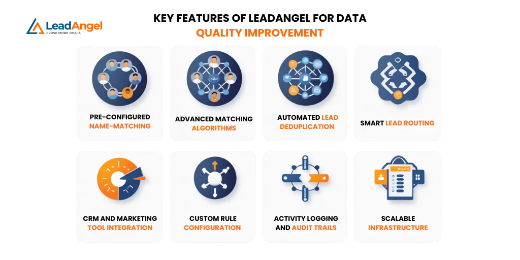 That’s where LeadAngel comes in. It simplifies the process with a user-friendly platform that handles name matching, lead management, and more. With scalable and customizable features, LeadAngel keeps your data clean and ready to use, helping your business run smoothly.Ready to take your data quality to the next level? Sign up for free or book a demo with LeadAngel today to experience how effortless data quality improvement can be.
