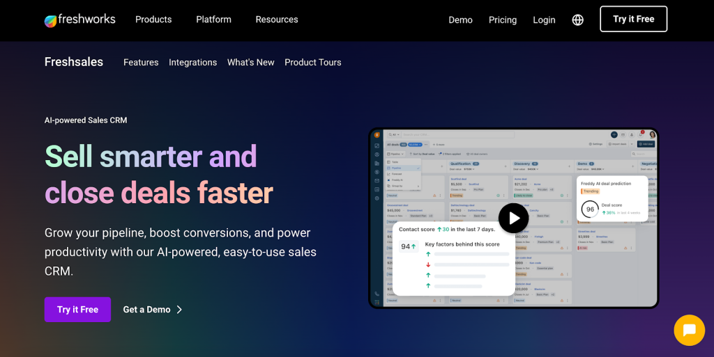Freshsales gives sales teams AI-powered tools to manage pipelines efficiently.