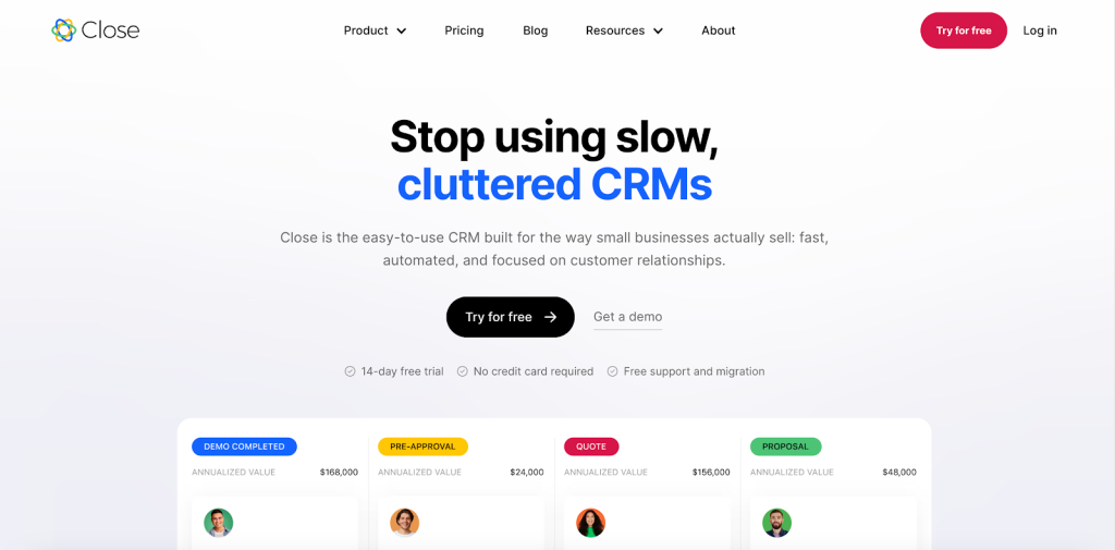 Close is suitable for sales teams focused on high-touch, inside sales processes.